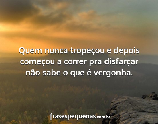 Quem nunca tropeçou e depois começou a correr pra disfarçar não sabe o que é vergonha.