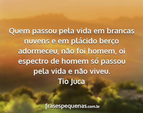 Quem passou pela vida em brancas nuvens e em plácido berço adormeceu, não foi homem, oi espectro de homem só passou pela vida e não viveu.Tio Juca