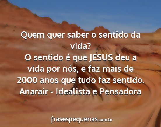 O sentido é que JESUS deu a vida por nós, e faz mais de 2000 anos que tudo faz sentido.Anarair - Idealista e Pensadora