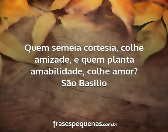 Quem semeia cortesia, colhe amizade, e quem planta amabilidade, colhe amor?