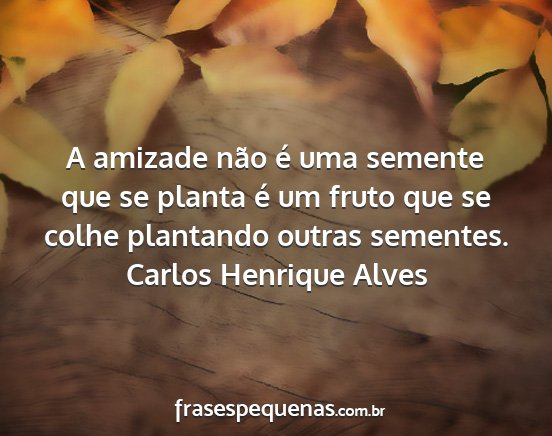 A amizade não é uma semente que se planta é um fruto que se colhe plantando outras sementes.Carlos Henrique Alves
