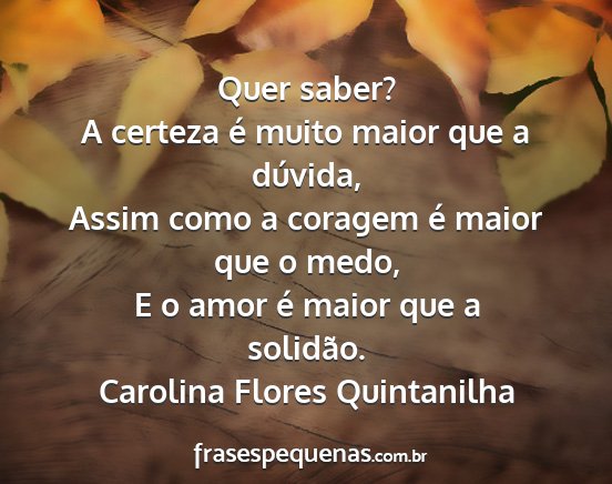 E o amor é maior que a solidão.Carolina Flores Quintanilha