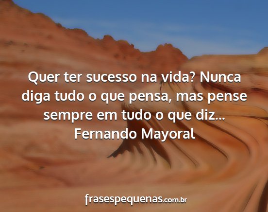 Quer ter sucesso na vida? Nunca diga tudo o que pensa, mas pense sempre em tudo o que diz...Fernando Mayoral