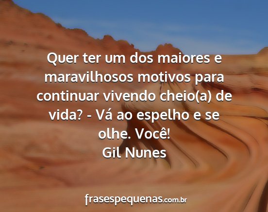 Quer ter um dos maiores e maravilhosos motivos para continuar vivendo cheio(a) de vida? - Vá ao espelho e se olhe. Você!Gil Nunes