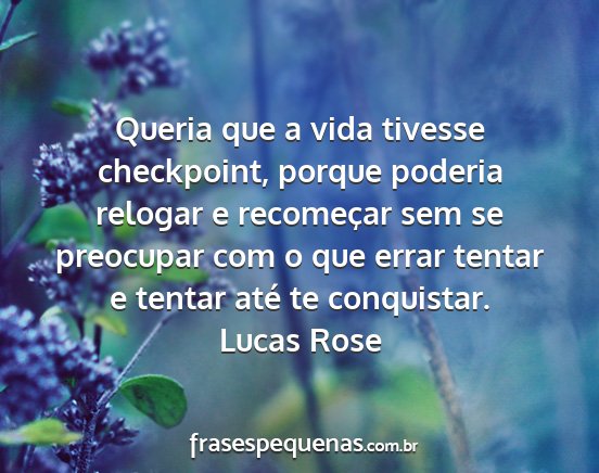 Queria que a vida tivesse checkpoint, porque poderia relogar e recomeçar sem se preocupar com o que errar tentar e tentar até te conquistar.Lucas Rose