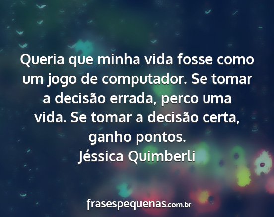 Queria que minha vida fosse como um jogo de computador. Se tomar a decisão errada, perco uma vida. Se tomar a decisão certa, ganho pontos.Jéssica Quimberli