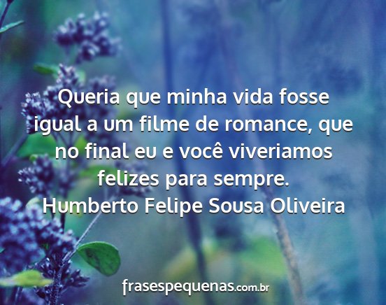Queria que minha vida fosse igual a um filme de romance, que no final eu e você viveriamos felizes para sempre.Humberto Felipe Sousa Oliveira