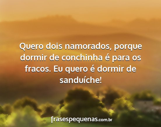 Quero dois namorados, porque dormir de conchinha é para os fracos. Eu quero é dormir de sanduíche!