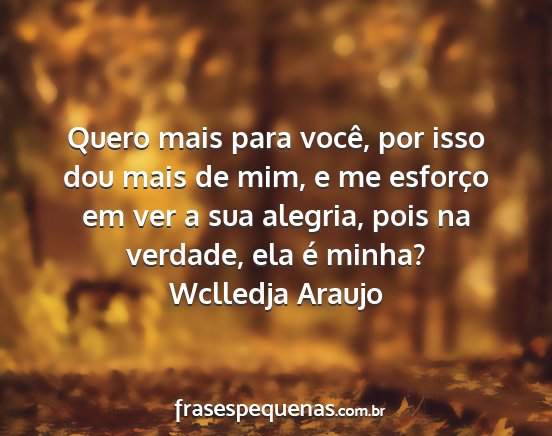 Quero mais para você, por isso dou mais de mim, e me esforço em ver a sua alegria, pois na verdade, ela é minha?Wclledja Araujo