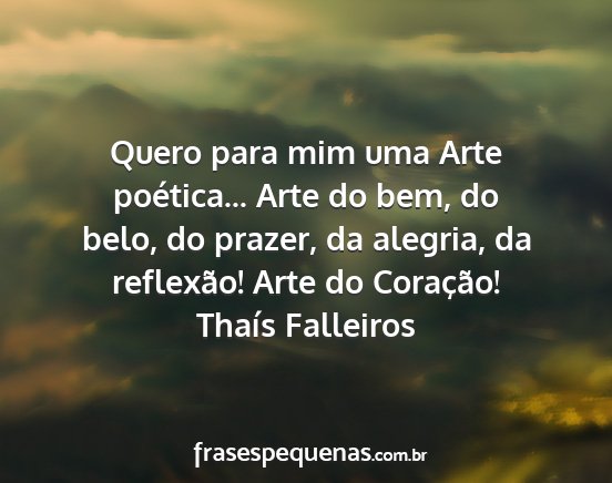 Quero para mim uma Arte poética... Arte do bem, do belo, do prazer, da alegria, da reflexão! Arte do Coração!Thaís Falleiros