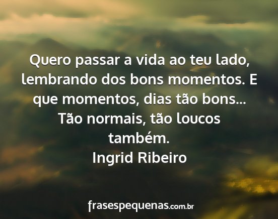 Quero passar a vida ao teu lado, lembrando dos bons momentos. E que momentos, dias tão bons... Tão normais, tão loucos também.Ingrid Ribeiro