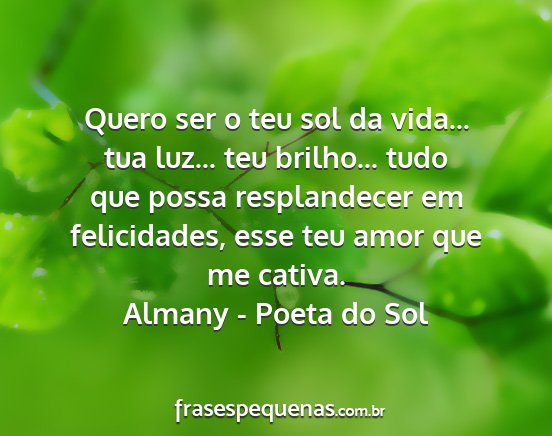 Quero ser o teu sol da vida... tua luz... teu brilho... tudo que possa resplandecer em felicidades, esse teu amor que me cativa.Almany - Poeta do Sol