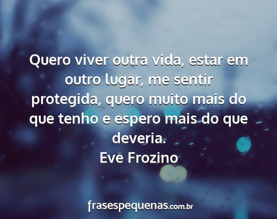 Quero viver outra vida, estar em outro lugar, me sentir protegida, quero muito mais do que tenho e espero mais do que deveria.Eve Frozino