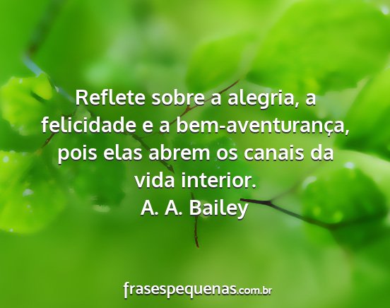 Reflete sobre a alegria, a felicidade e a bem-aventurança, pois elas abrem os canais da vida interior.A. A. Bailey