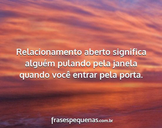Relacionamento aberto significa alguém pulando pela janela quando você entrar pela porta.