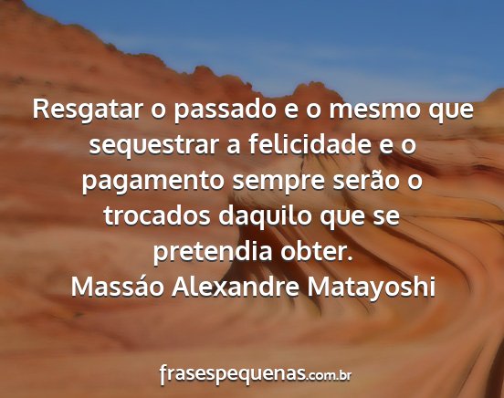 Resgatar o passado e o mesmo que sequestrar a felicidade e o pagamento sempre serão o trocados daquilo que se pretendia obter.Massáo Alexandre Matayoshi