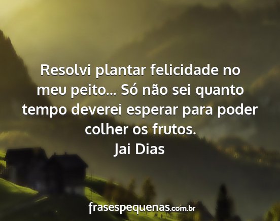 Resolvi plantar felicidade no meu peito... Só não sei quanto tempo deverei esperar para poder colher os frutos.Jai Dias
