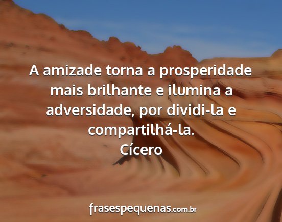A amizade torna a prosperidade mais brilhante e ilumina a adversidade, por dividi-la e compartilhá-la.Cícero