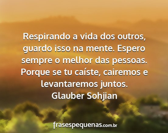 Respirando a vida dos outros, guardo isso na mente. Espero sempre o melhor das pessoas. Porque se tu caíste, cairemos e levantaremos juntos.Glauber Sohjian