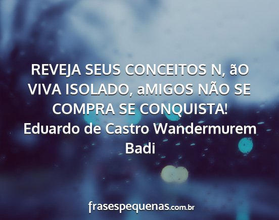 REVEJA SEUS CONCEITOS N, ãO VIVA ISOLADO, aMIGOS NÃO SE COMPRA SE CONQUISTA!Eduardo de Castro Wandermurem Badi