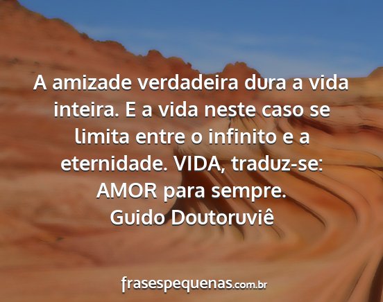 A amizade verdadeira dura a vida inteira. E a vida neste caso se limita entre o infinito e a eternidade. VIDA, traduz-se: AMOR para sempre.Guido Doutoruviê