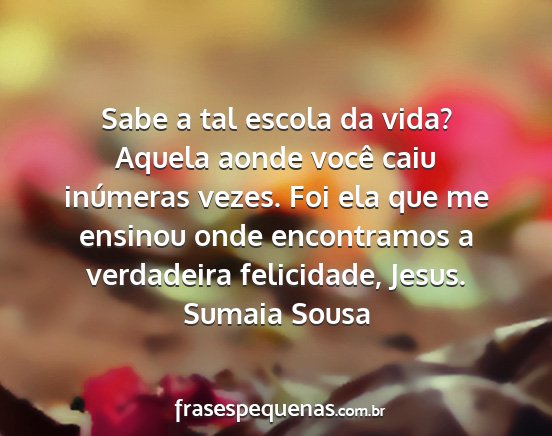 Sabe a tal escola da vida? Aquela aonde você caiu inúmeras vezes. Foi ela que me ensinou onde encontramos a verdadeira felicidade, Jesus.Sumaia Sousa