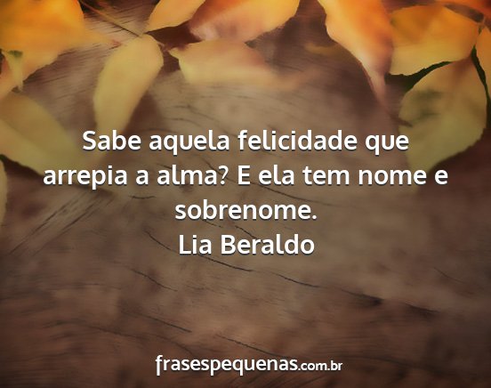 Sabe aquela felicidade que arrepia a alma? E ela tem nome e sobrenome.