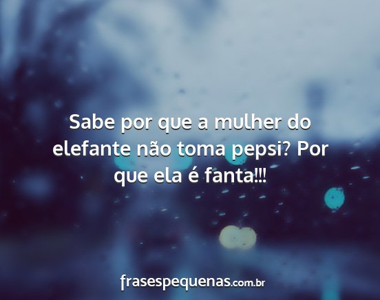 Sabe por que a mulher do elefante não toma pepsi? Por que ela é fanta!!!