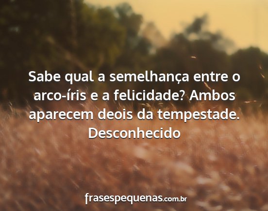 Sabe qual a semelhança entre o arco-íris e a felicidade? Ambos aparecem deois da tempestade.Desconhecido