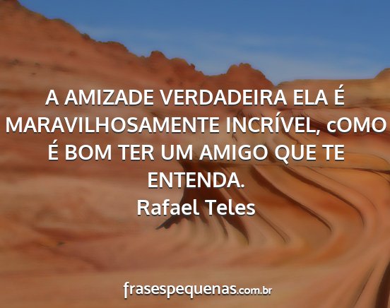 A AMIZADE VERDADEIRA ELA É MARAVILHOSAMENTE INCRÍVEL, cOMO É BOM TER UM AMIGO QUE TE ENTENDA.Rafael Teles