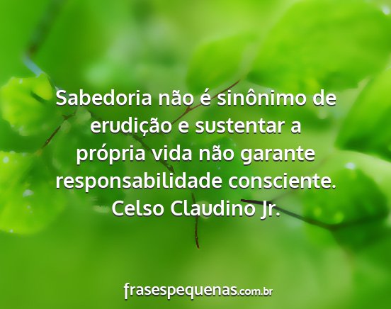 Sabedoria não é sinônimo de erudição e sustentar a própria vida não garante responsabilidade consciente.Celso Claudino Jr.
