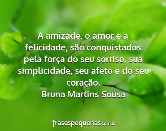 A amizade, o amor e a felicidade, são conquistados pela força do seu sorriso, sua simplicidade, seu afeto e do seu coração.Bruna Martins Sousa