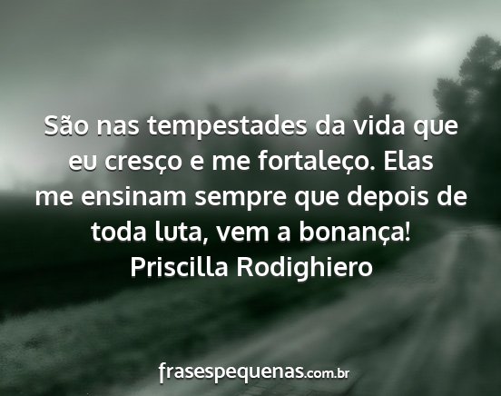 São nas tempestades da vida que eu cresço e me fortaleço. Elas me ensinam sempre que depois de toda luta, vem a bonança!Priscilla Rodighiero