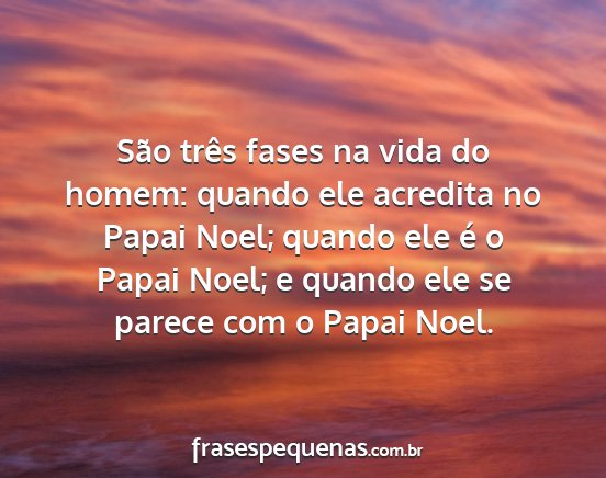 São três fases na vida do homem: quando ele acredita no Papai Noel; quando ele é o Papai Noel; e quando ele se parece com o Papai Noel.