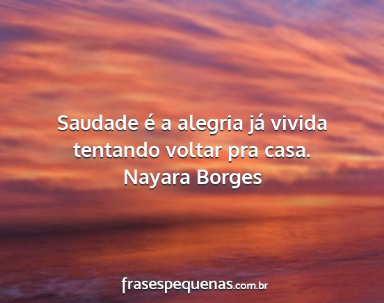 Saudade é a alegria já vivida tentando voltar pra casa.