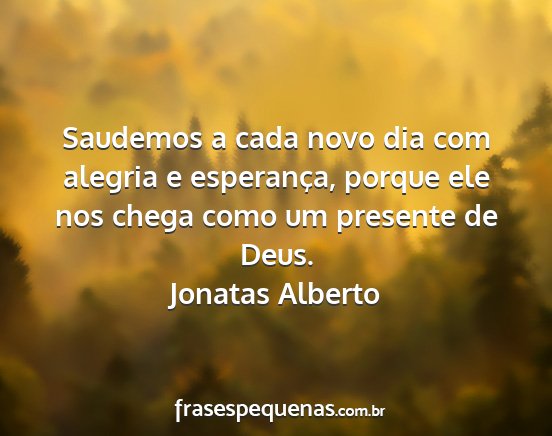 Saudemos a cada novo dia com alegria e esperança, porque ele nos chega como um presente de Deus.Jonatas Alberto
