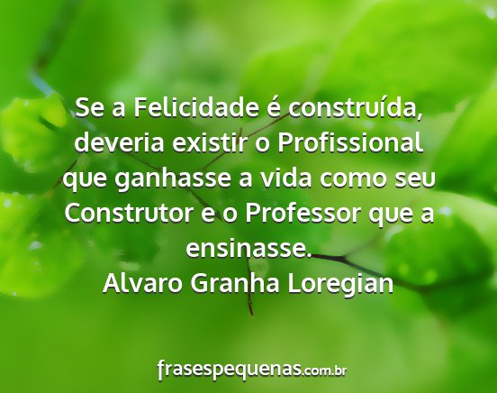 Se a Felicidade é construída, deveria existir o Profissional que ganhasse a vida como seu Construtor e o Professor que a ensinasse.Alvaro Granha Loregian