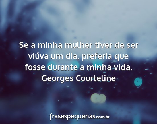 Se a minha mulher tiver de ser viúva um dia, preferia que fosse durante a minha vida.Georges Courteline