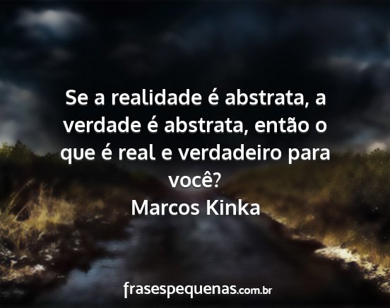 Se a realidade é abstrata, a verdade é abstrata, então o que é real e verdadeiro para você?Marcos Kinka