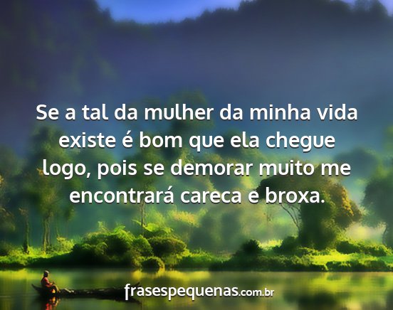 Se a tal da mulher da minha vida existe é bom que ela chegue logo, pois se demorar muito me encontrará careca e broxa.