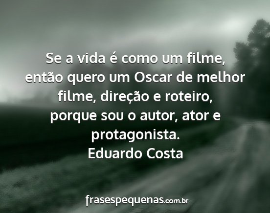 Se a vida é como um filme, então quero um Oscar de melhor filme, direção e roteiro, porque sou o autor, ator e protagonista.Eduardo Costa