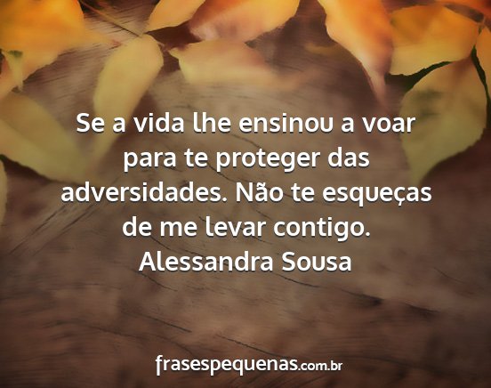 Se a vida lhe ensinou a voar para te proteger das adversidades. Não te esqueças de me levar contigo.Alessandra Sousa