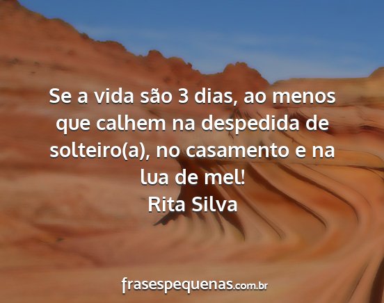 Se a vida são 3 dias, ao menos que calhem na despedida de solteiro(a), no casamento e na lua de mel!Rita Silva
