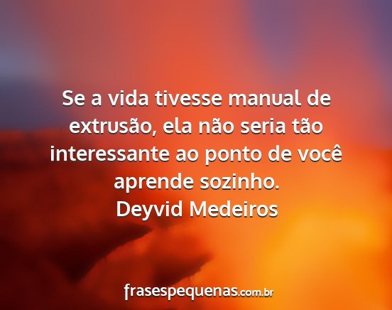 Se a vida tivesse manual de extrusão, ela não seria tão interessante ao ponto de você aprende sozinho.Deyvid Medeiros