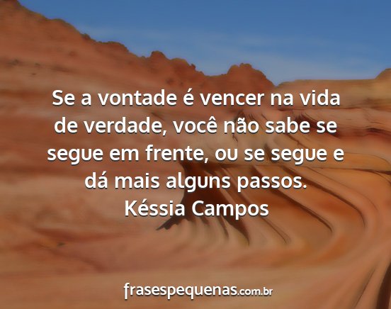Se a vontade é vencer na vida de verdade, você não sabe se segue em frente, ou se segue e dá mais alguns passos.Késsia Campos