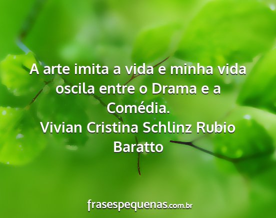 A arte imita a vida e minha vida oscila entre o Drama e a Comédia.Vivian Cristina Schlinz Rubio Baratto