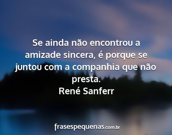 Se ainda não encontrou a amizade sincera, é porque se juntou com a companhia que não presta.René Sanferr