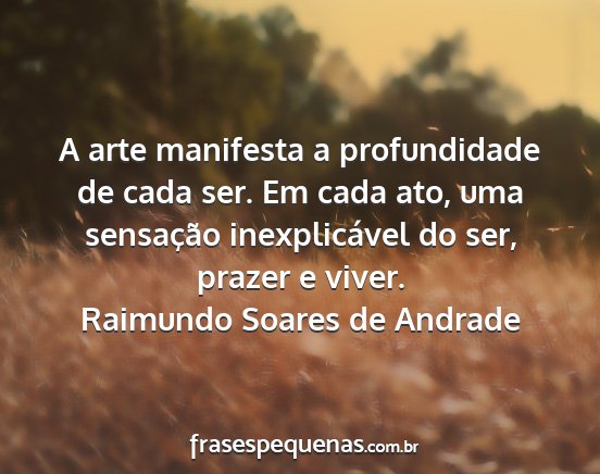 A arte manifesta a profundidade de cada ser. Em cada ato, uma sensação inexplicável do ser, prazer e viver.Raimundo Soares de Andrade