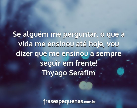 Se alguém me perguntar, o que a vida me ensinou até hoje, vou dizer que me ensinou a sempre seguir em frente!Thyago Serafim