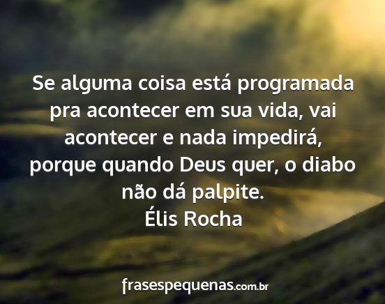Se alguma coisa está programada pra acontecer em sua vida, vai acontecer e nada impedirá, porque quando Deus quer, o diabo não dá palpite.Élis Rocha